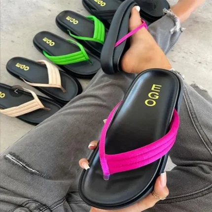 Size:5-11 Women Fashion Color Blocking Thick-soled Flip-flop