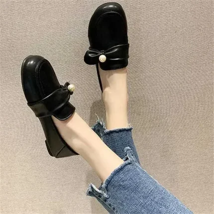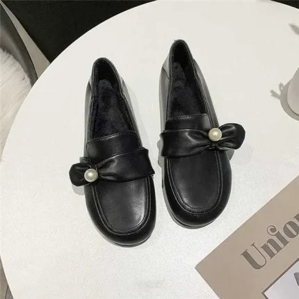 Size:4.5-8.5 Women Fashion Round-toe Imitation Pearl Decorative Loafers