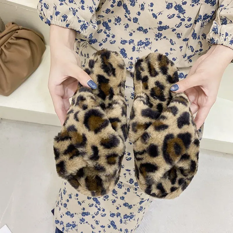 Size:5-12 Women Fashion Color Blocking Plush Slippers