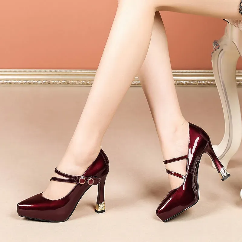 Women Fashion Basic Bright Color PU Pointed Toe Stiletto High Heel Pumps