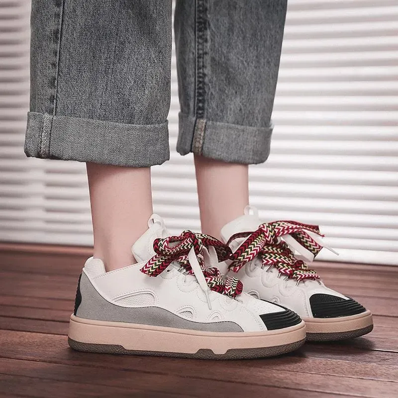 Size:4.5-9 Women Retro Flat Base Tether Design Sneakers