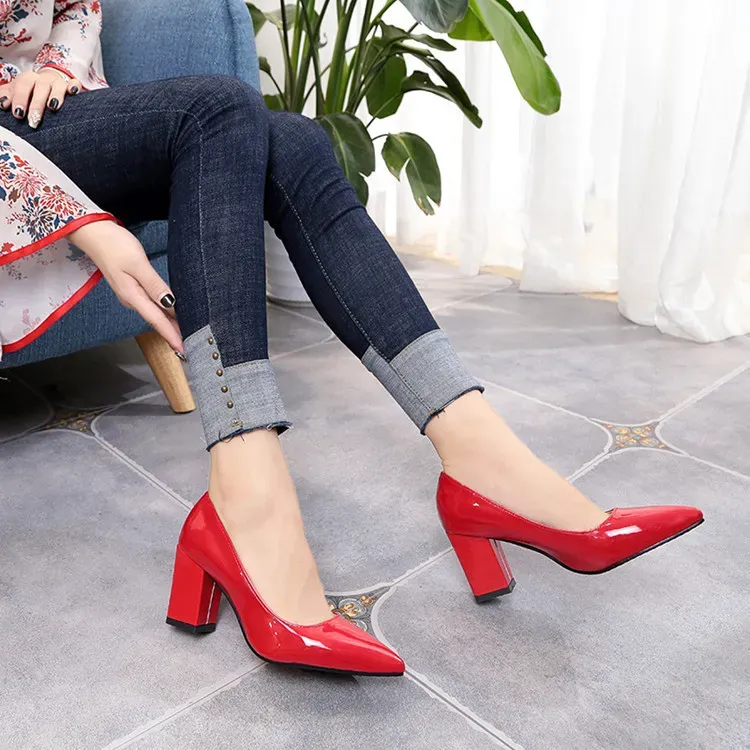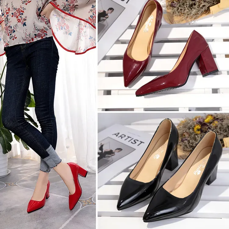 Product Description Gross Weight: 0.6kg Upper Material: PU Sole Material: rubber Gender: Female Toe: Pointed Toe Heel Shape: chunky heel