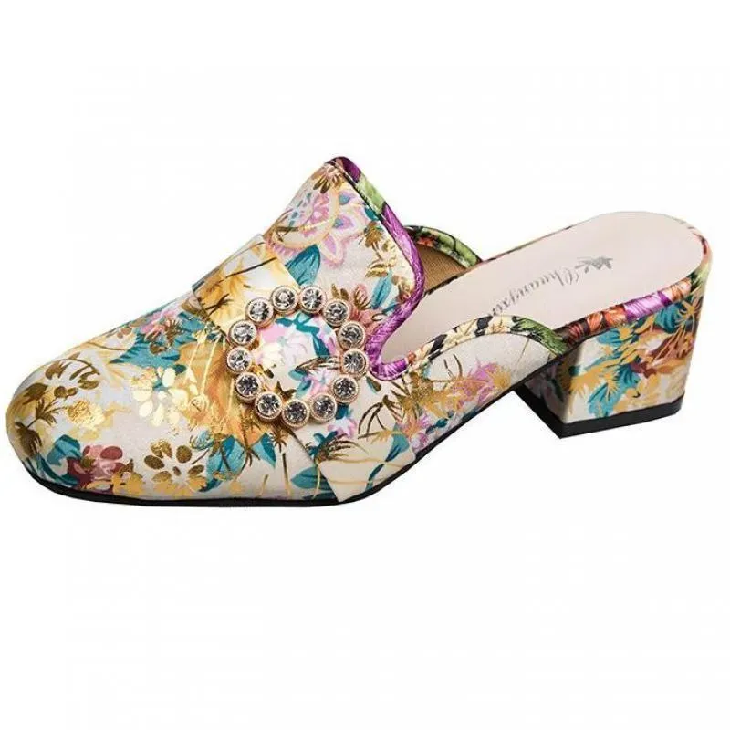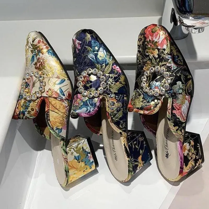 Product Description Pump Type: Mules Heel Type: Square Heel Upper Material: PU Toe Shape: Pointed Toe Style: LEISURE Fashion Element: