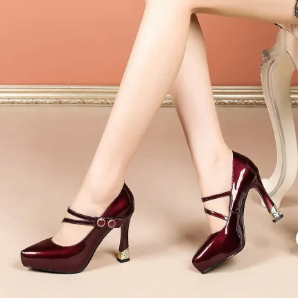 Spring And Autumn High-Heeled Women Thick Heel Elegant Platform Patent Leather Pumps
