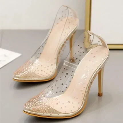 Size:4.5-10 Women Sexy Rhinestone Decoration Transparent Upper Stiletto Heels Pumps