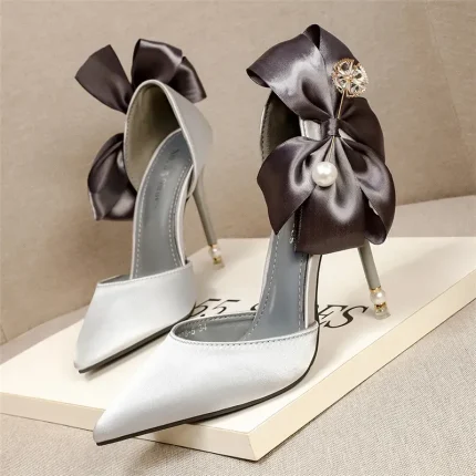 Women Fashion Wedding Bridal 7cm 10cm High Heels Satin Sweet Bowknot Stiletto Pointed Toe Pumps